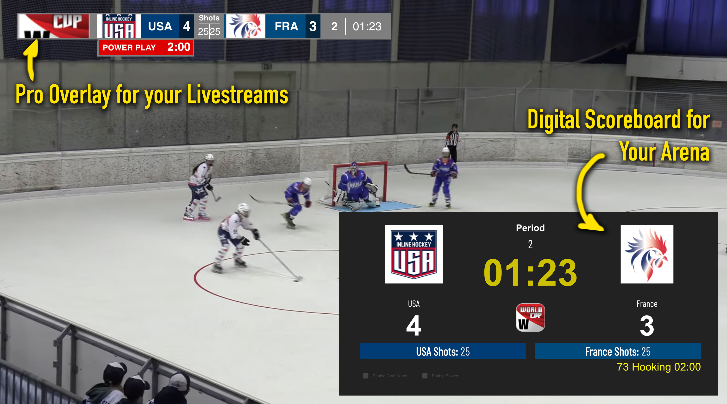 Real-time score overlays give your livestreams the pro treatment—complete with periods, goals, timers, and penalties. It’s what your audience expects.